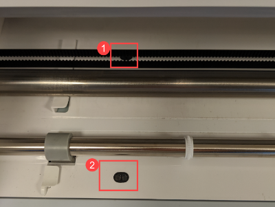 En una máquina Cricut Maker 3 o Cricut Explore 3, hay dos sensores: uno detrás de la correa en la máquina y otro delante de la barra de rodillos en la máquina, como se muestra en esta foto.