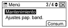 2. Pulse el botón [▲] o [▼] para visualizar [Mantenimiento] y, a continuación, pulse la tecla [OK].