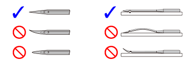 La aguja de coser siempre debe estar recta y filosa para lograr una costura sin problemas.