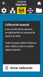 1. Toque Print (Imprimir) > Sensors (sensores) > Manual Calibration (calibracion manual)